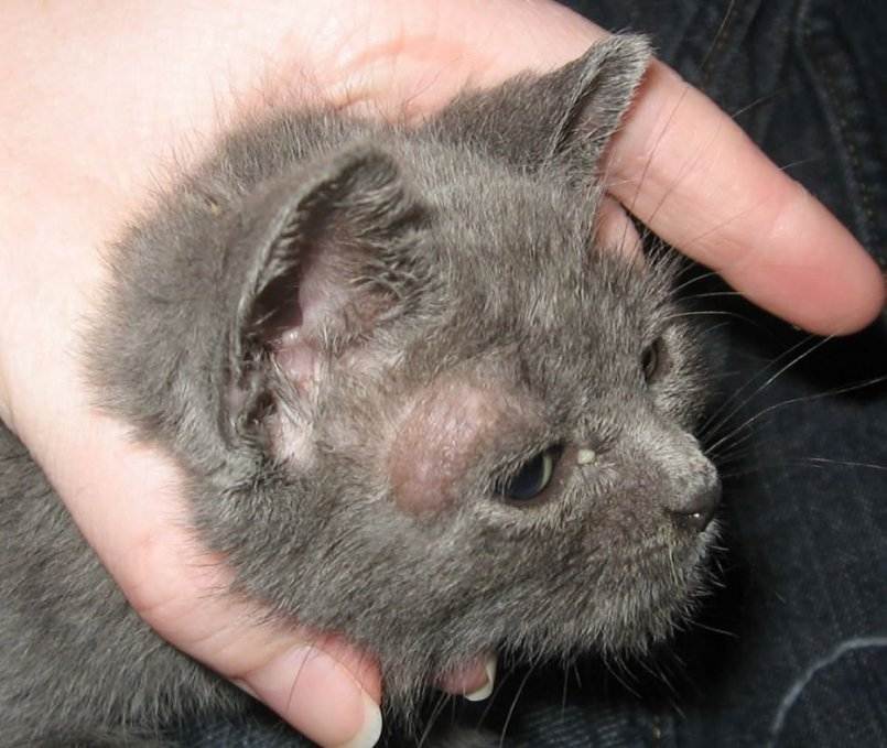 Если это повреждена часть головы, именно на голове расположены узелки скорее всего животное пострадало от таких вредителей, как клещи. Наиболее точный диагноз можно установить после того, как ветврачи полностью обследуют кошку.