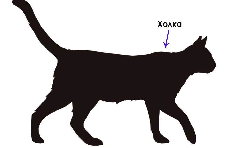В строении кошки в месте загривка есть дугообразная выпуклость — это холка. Она принимает такую форму, потому что первые пять-шесть позвонков, размещённые в этой области, покрыты слоем жира под кожей. Кожа над холкой отличается от кожи на других частях тела. Ей присуща упругость и эластичность. Нервных окончаний в месте холки практически нет. В этом кроется причина, почему котёнок не испытывает боли, когда его несёт мама-кошка.