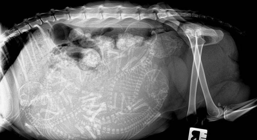С середины беременности можно отметить изменения в кошачьем организме и на рентгене. Чтобы излучение не нанесло вред котятам, метод лучше использовать не ранее 40 дня с момента вязки. В это время на снимке уже видны скелеты малышей.