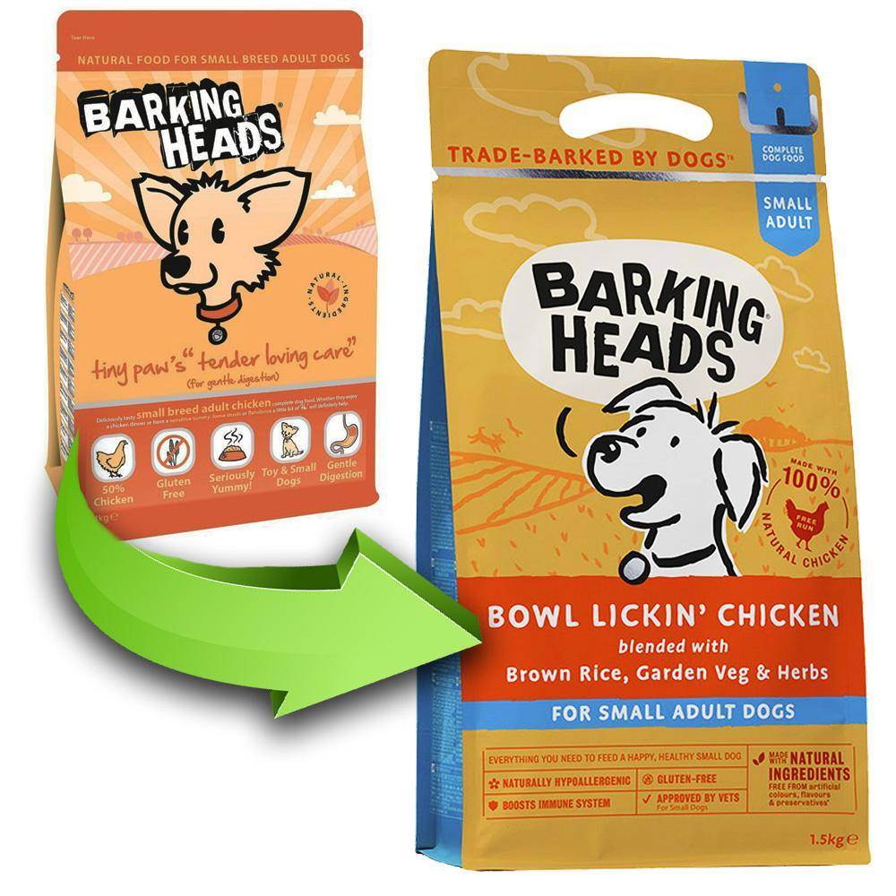 - Barking Heads Adultsmallbreed Chicken – корм с монопротеиновой формулой, основанной на использовании мяса цыпленка и риса и удовлетворяющей запросы собак маленьких пород.