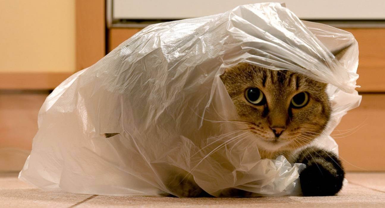 Поэтому важно не бросать пакеты где попало и не позволять кошке доставать их из мусорного ведра