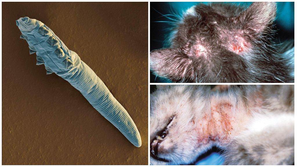 Обнаружить клеща на теле у кошки очень сложно из-за шерстяного покрова. Сам вид этого клеща выглядит как подкожный червь, поселяющийся под кожей питомца или в его ушах.