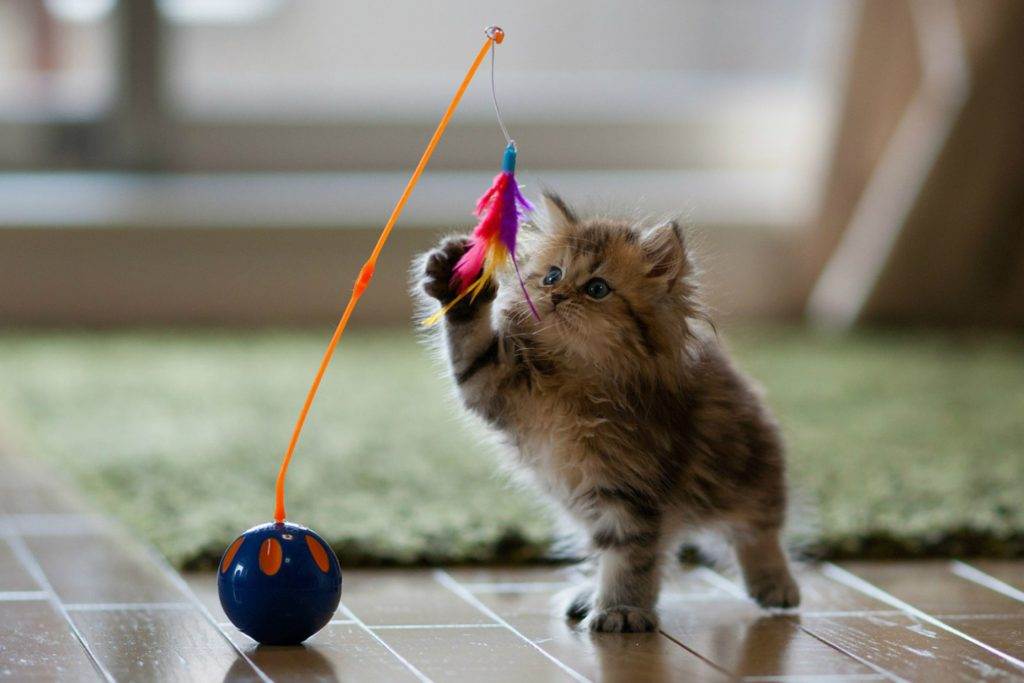 Упражнения — это один из лучших известных способов снятия стресса. Котята, которые остаются одни на целый рабочий день, обычно в той или иной степени подвержены стрессу. Поэтому сделайте так, чтобы котенок хотя бы раз в день занимался интенсивными игровыми упражнения. Это поможет ему расслабиться и лучше справляться с периодами одиночества. Идеальный вариант — два занятия в день, по десять-пятнадцать минут каждое, одно по утрам, а другое — по вечерам. Чем больше в этих играх элементов аэробики, тем лучше. Если котенок гоняется за мячом, подпрыгивает за игрушкой или бросается на игрушку, которую вы тянете по полу — это чудесная игра, наблюдать ее почти так же весело, как играть в нее самому.