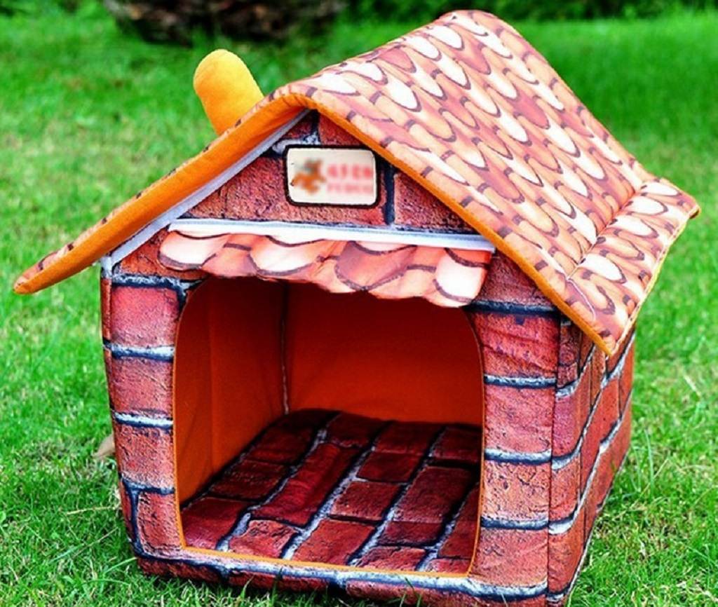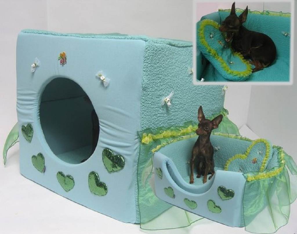 Чаще всего сооружают подобие конуры, будки. Но домик может быть любой формы и вида.Сделать инопланетный корабль или соорудить целый дворец – легко. Была бы фантазия. Вот, например, на картинке показан домик для чихуахуа, своими руками сшитый в виде палатки. Не замок, конечно, но главное – собачке в ней комфортно.