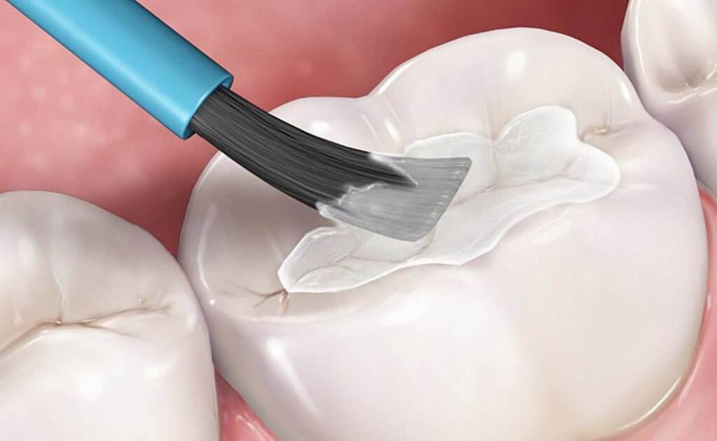 Как правило, проведение фторирования не входит в калькуляцию комплексной профгигиены, но он очень важен для здоровья зубов. Нанесение фтора способствует укреплению эмалевого слоя (препятствует вымыванию кальция), снижает повышенную чувствительность, предотвращает зарождение кариеса (замедляет размножения болезнетворных бактерий). Поэтому не стоит отказываться от этой процедуры. Алгоритм фторирования: врач высушивает обрабатываемую поверхность теплой воздушной струей, затем наносит фторлак (безвредный состав на основе лака с повышенной концентрацией фторидов) на каждый элемент зубного ряда, потом его сушит.