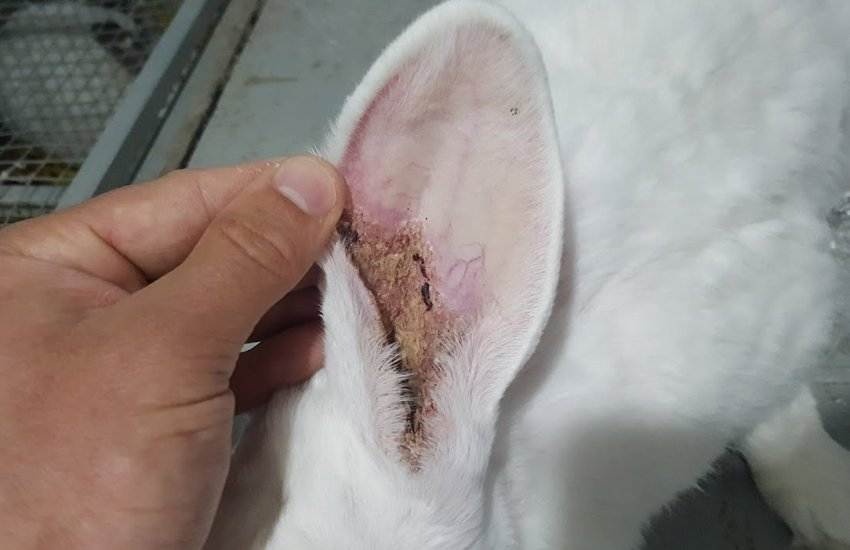Если ранки не механические и сопровождаются другими симптомами – например, неадекватным поведением кролика (трясёт головой, падает, малоподвижен, интенсивно чешется), скорее всего, речь идёт об ушном клеще или отите.
