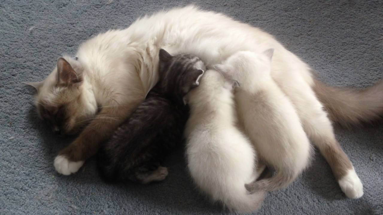 Хозяин должен проследить за тем, чтобы кошка восстановила свой вес сразу после того, как котята смогут самостоятельно передвигаться. В идеале рядом с мамой должно находиться хорошо упитанное потомство.