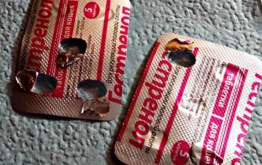 Эффективно повлиять на наступление половой охоты могут только гормоны, натуральные или синтезированные. Прогестерон поступает в организм во время беременности. Доза прогестиновых препаратов, введенная в период покоя, подавляет влияние фолликулостимулирующего гормона. Эстроген, провоцирующий половое влечение, не поступает в кровь, период половой охоты блокируется. Если гормональные лекарства применяются неправильно, питомица может умереть.