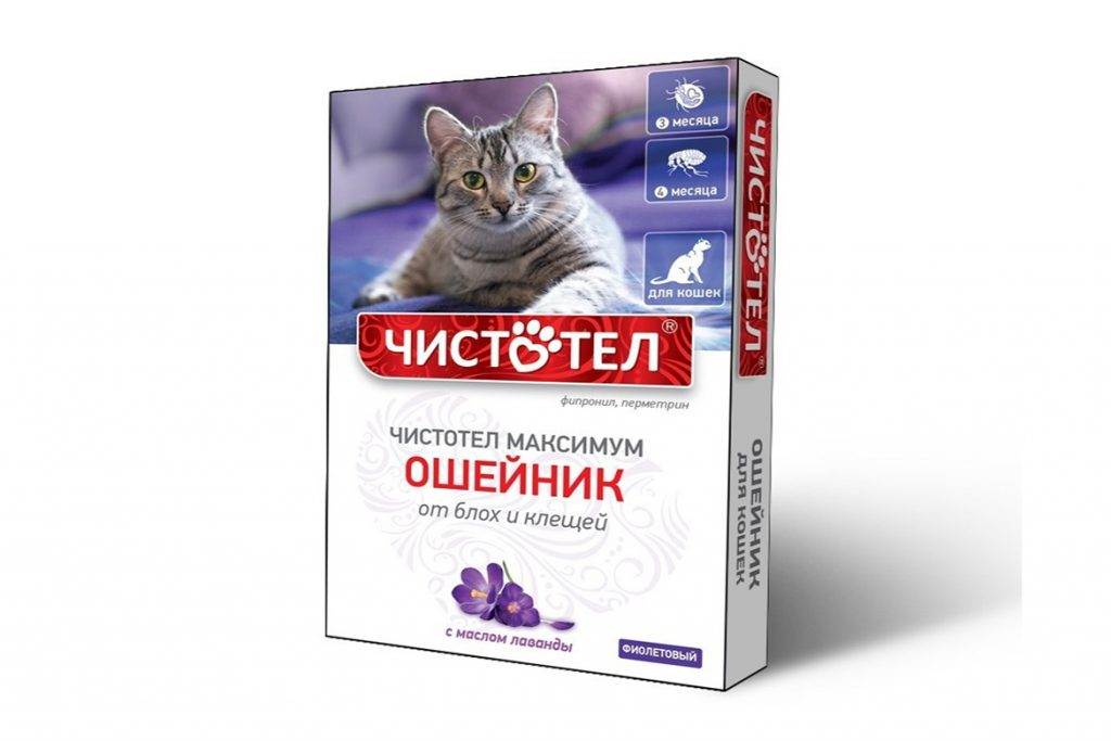 Последний из вариантов был рассмотрен выше. Чистотел Максимум содержит масло лаванды. Его можно применять для защиты животных 4-месячного возраста и старше. Длительность пролонгированного действия — 2-3 месяца (зависит от вида паразита). Например, на клещей средство действует не слишком долго (90 дней). Против насекомых биоошейник может применяться 4 месяца.
