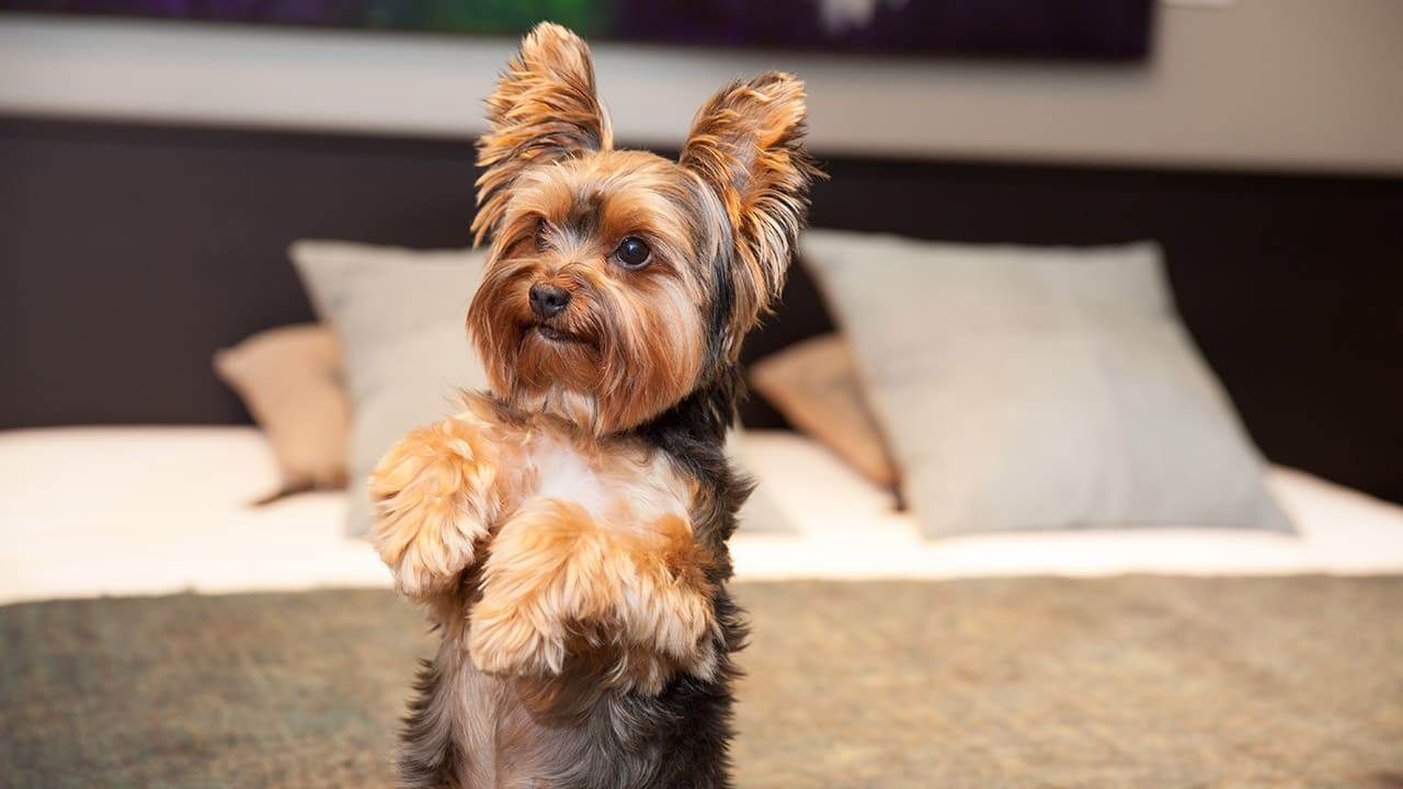 Воспитанная собака сразу реагирует на команды хозяина. Она понимает слова «нельзя», «фу», знает правила поведения. Но многие хозяева позволяют йоркам спать на кровати, запрыгивать на диван, выпрашивать еду. Когда питомец еще маленький, такое поведение может умилять, щенку жалко что-то запрещать. Но эти вредные привычки останутся и у взрослой собаки, они могут доставить неудобства.