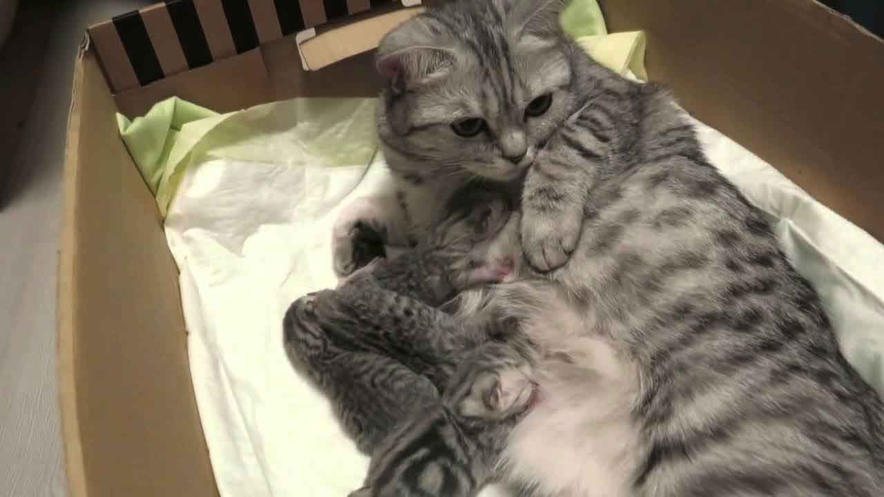 - положа руку на живот кошки, можно почувствовать первые маточные сокращения. После их начала до раскрытия шейки матки может пройти до 8 часов (у шотландской вислоухой период может затянуться до 12-20 ч);