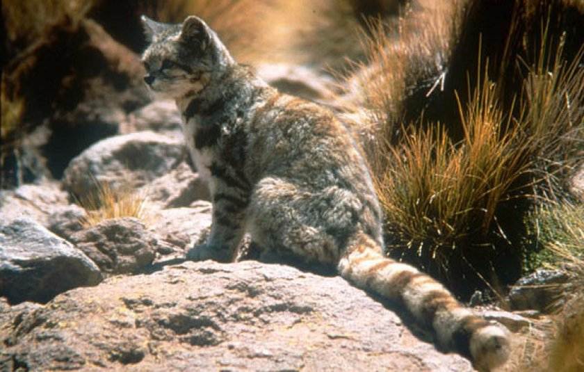 Водится в Южной Америке, имеет плотное телосложение, цветом схожа с леопардом. Вес взрослой особи — до 8/11 кг (кошка/кот), длина тела до 75 см.