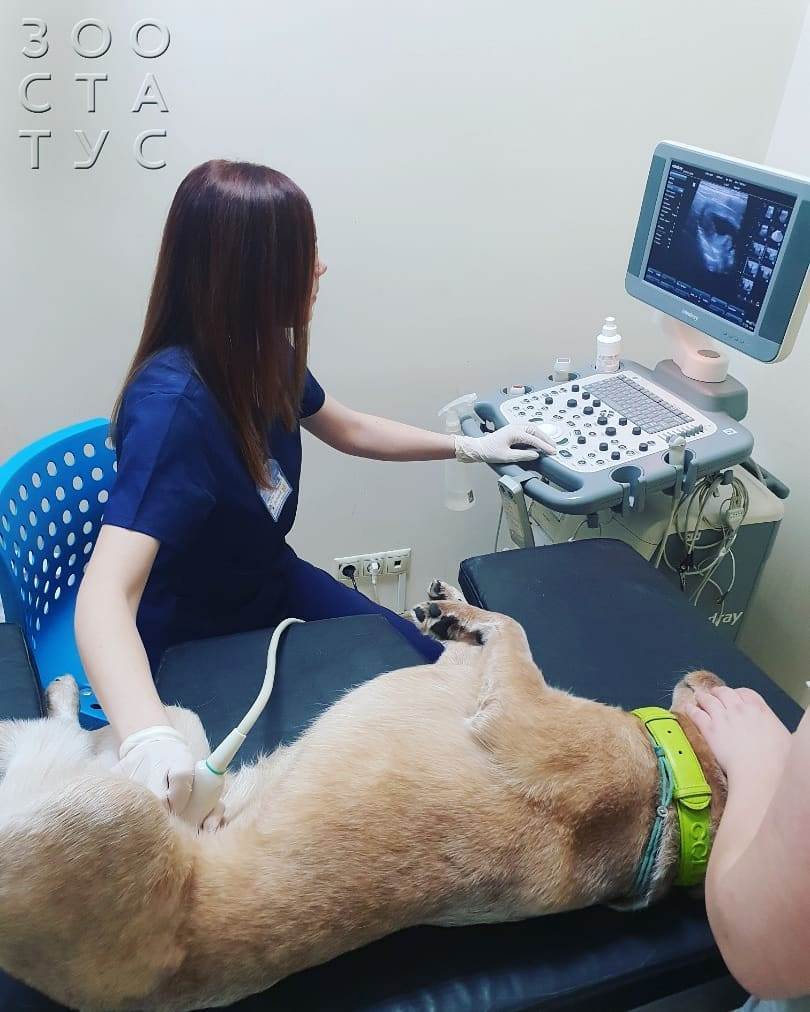 - У нее вздулся живот, она скулит, тычется в него носом.