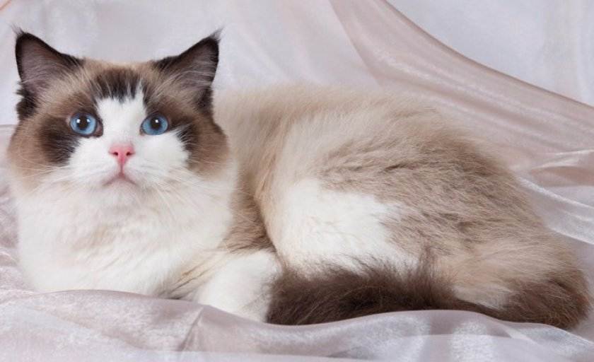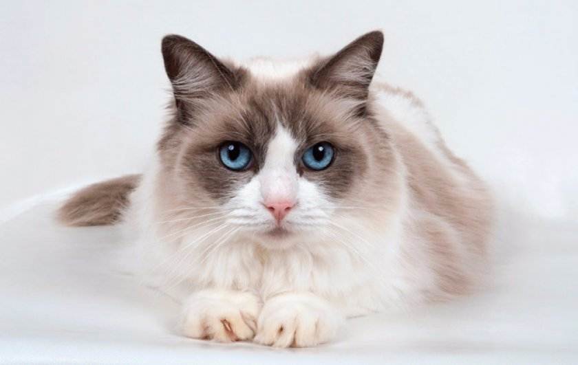 - Рэгдолл – голубоглазые коты с шелковистой шерстью обладают мягким характером, от природы очень ленивы. Быстро привыкают к человеку, очень привязаны к хозяину. Вес самца достигает 12 кг, самки 7-8 кг.