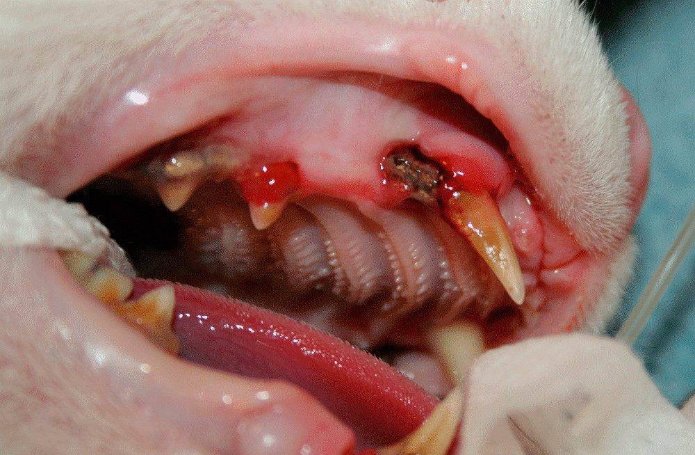- Трубчатые кости в рационе. Острые края травмируют десны и мягкие ткани. В трещины проникают микробы, и начинается воспалительный процесс.