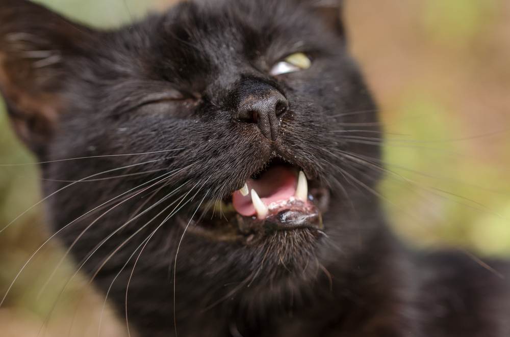 Стоматологические проблемы. Заболевания десен, кариес сопровождаются воспалением и вызывают у домашних кошек и котов чихание. При этом процесс может сопровождаться кровянистыми выделениями, животное плохо ест, худеет.