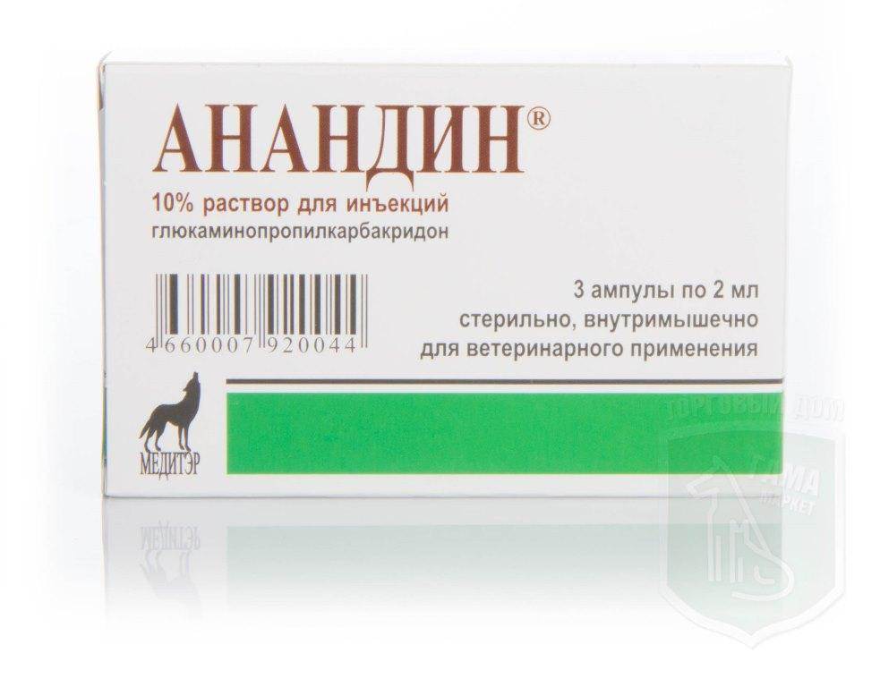 Дозировка рассчитывается с учетом массы тела животного. На 1 кг веса пациента обычно требуется 20 мг Анандина. Если уколы назначают с профилактической целью, то разовая доза уменьшается до 5 мг на 1 кг веса, а длительность курса увеличивается до 10 дней.