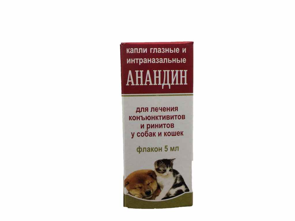 - Глазные-интраназальные капли. В зависимости от вида заболевания закапывают по 2-4 капли раствора «Анандин». Глазные капли для кошек при конъюнктивите капают 2 раза в день за нижнее веко; при рините – в обе ноздри 2-3 раза в день. Курс лечения в среднем длится 5-7 дней, иногда (в особо тяжелых случаях) может затянуться на две недели. При полном выздоровлении животного лечение прекращают.