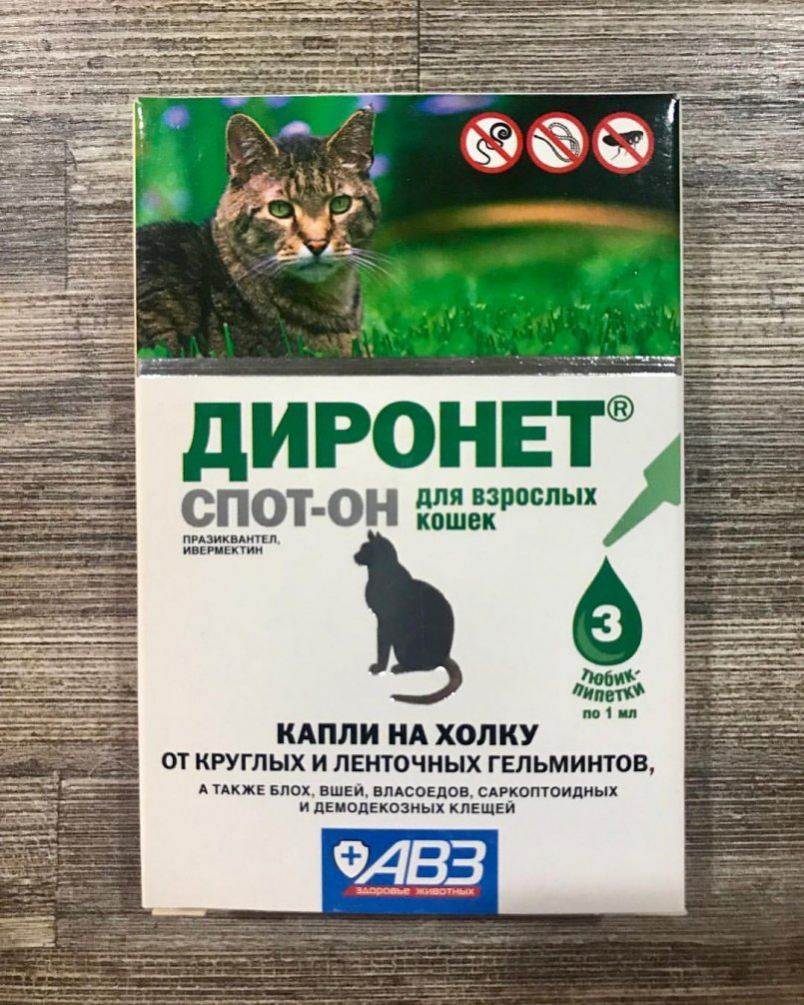 Преимуществами Диронет Спот-он является быстрое и эффективное избавление питомца от всех видов наружных паразитов и гельминтов. Средство отлично подходит для тех из них, которые отказываются от суспензий и таблеток. Лекарственный препарат обеспечивает максимальный эффект без стресса у кота или кошки.