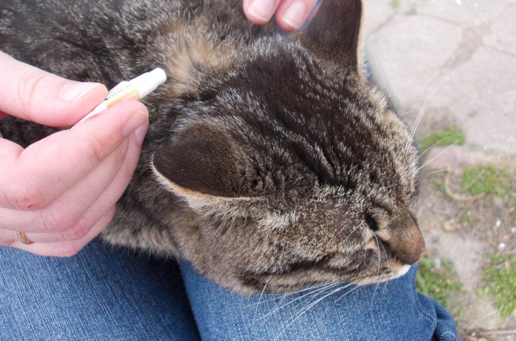 Акарицидно-инсектицидный препарат можно наносить на холку кошки, в области крупа, у основания хвоста, а также в местах наиболее частого скопления эктопаразитов на теле животных.