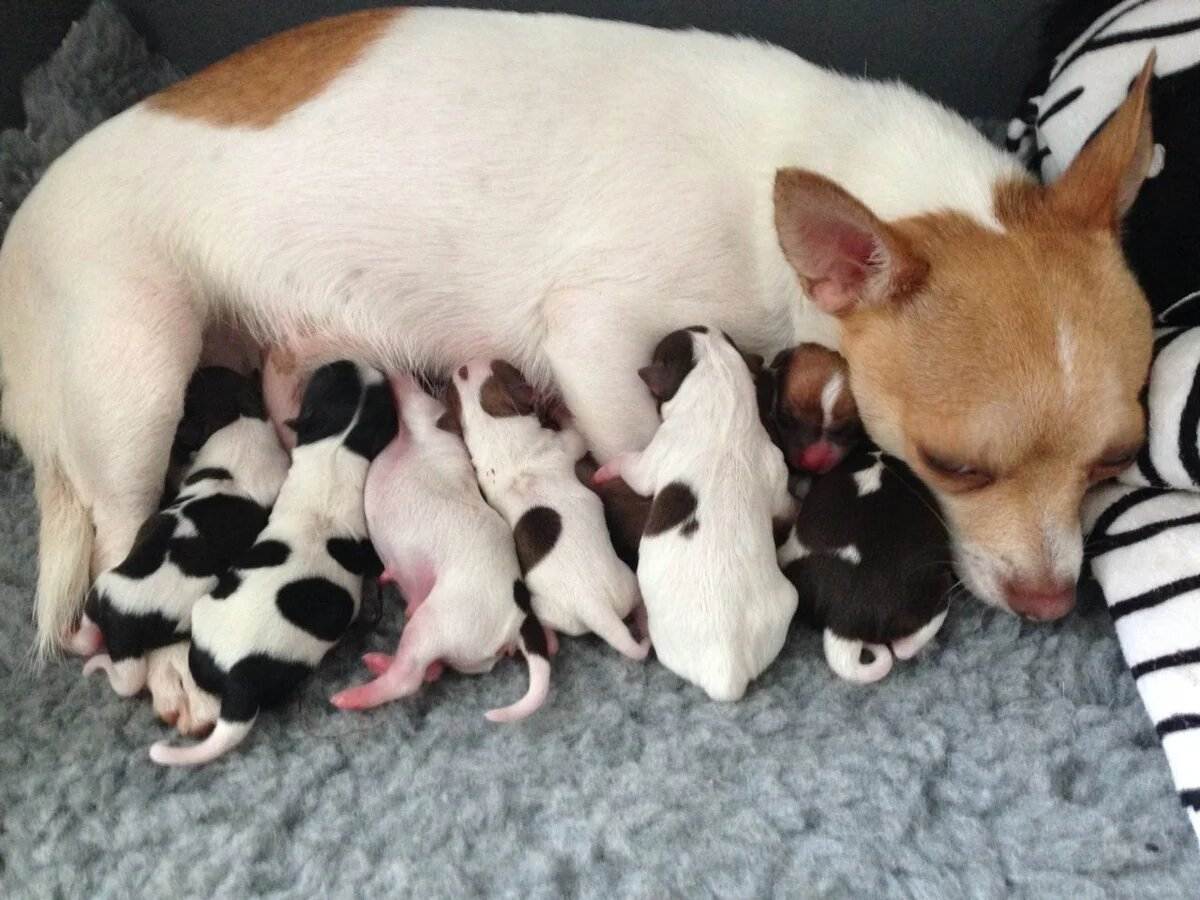 Роды чихуа позади, питомица спокойно ухаживает, облизывает щенков, малыши спят и кушают. Это нормальное поведение здоровой собаки после щенения. Беспокойная, пытающаяся спрятать щенков собака, сильно скулящие, не лактирующие щенки – это повод срочно звонить доктору.