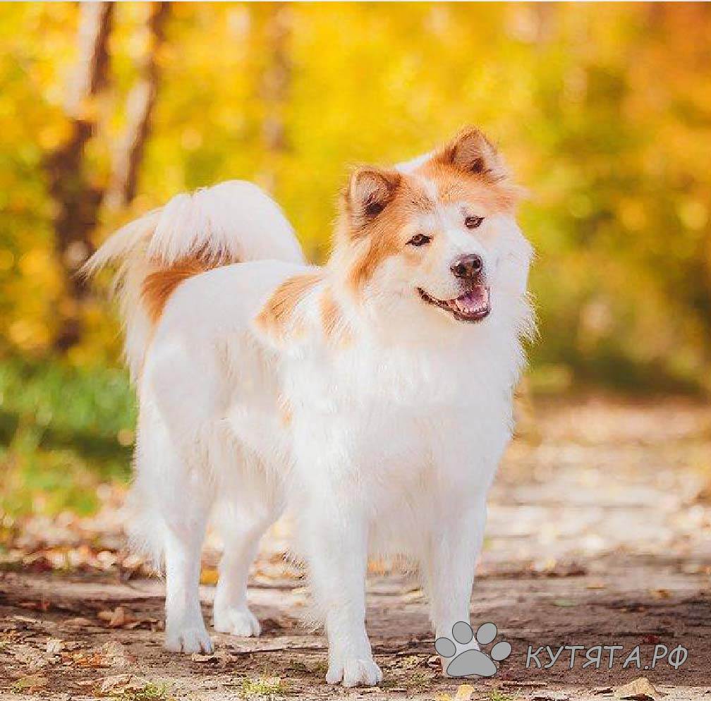 Это среднерослая собака с высотой в холке у кобелей 46-55 сантиметров, у сук − 41-50 сантиметров. Окрас двухцветный белый с пятнами рыжего, черного, персикового, серого цвета на голове, в районе пояса и хвоста. Окрас морды, как правило, с симметричными пятнами и с белой проточиной. Шерсть пушистая, с подшерстком.