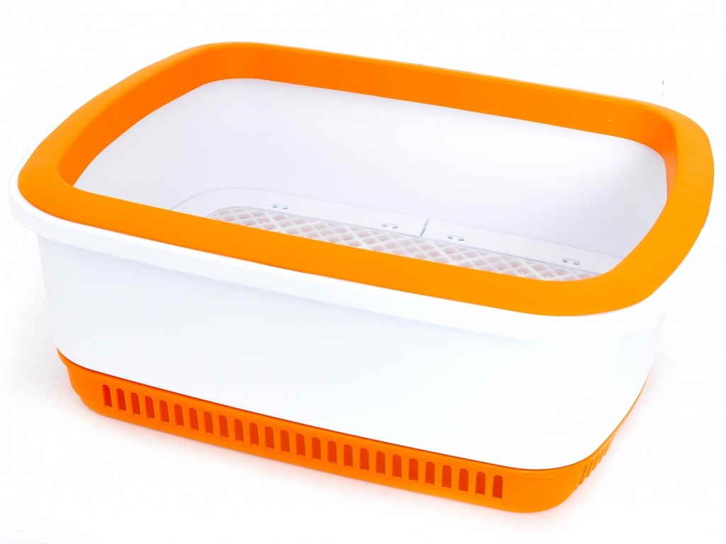Лоток с низкими бортиками считается наиболее простой и бюджетной моделью, которая имеет вход сверху. Такой пластиковый поддон с сеткой очень компактен, за счет чего прекрасно подходит для котят. К тому же убирать его не сложно. Но такая модель имеет недостатки. Она плохо удерживает запах. К тому же подобные китайские лотки нуждаются в специальном наполнителе, который котик, в свою очередь, может разносить по всей квартире после каждого посещения туалета.