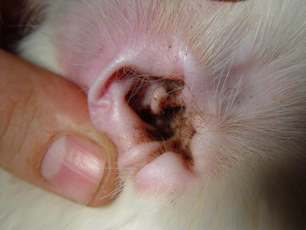 У больных животных в ушных раковинах часто скапливается большое количество дебриса (налета). Его нужно периодически удалять