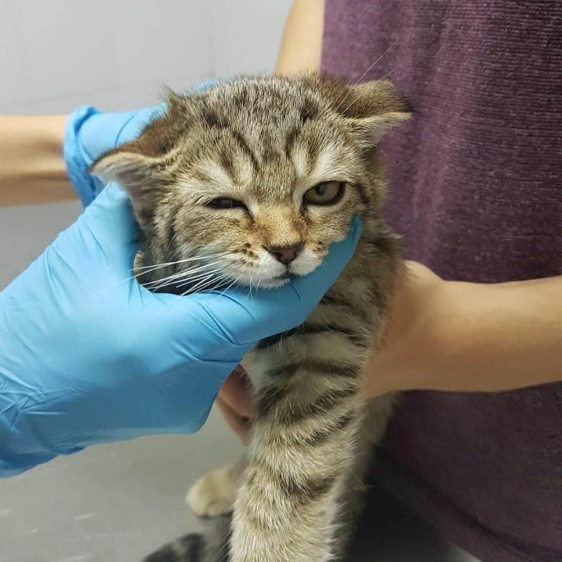 В последствие заболевания страдает внутреннее ухо и начинается гнойный менингит. При сильном воспалении у кошки увеличиваются подчелюстные лимфоузлы. Можно заметить, что кошка постоянно клонит голову в сторону больного уха.