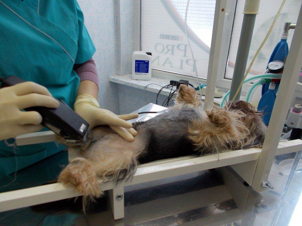 Вмешательство проводят под общей анестезией. Собаку или кошку не кормят в течение 10-12ч до операции.