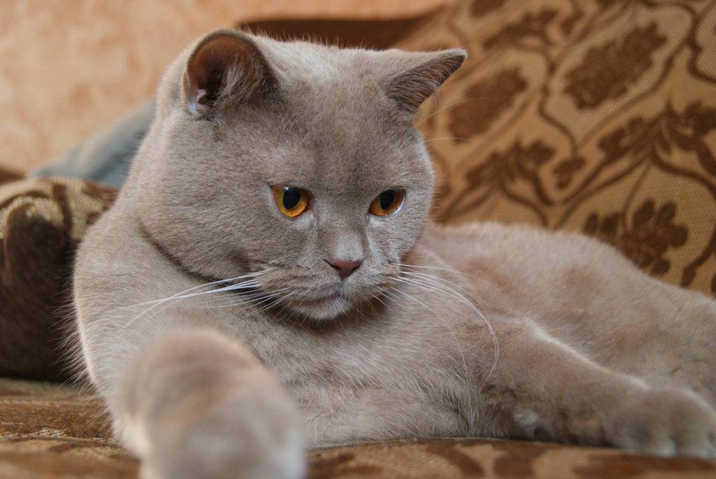 - Лиловый. Как и среди других пород кошек представителей шотландских прямоухих с таким цветом шерсти найти крайне сложно. По этой причине они очень дорого стоят.