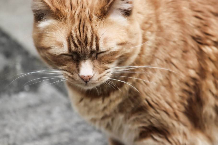- общее состояние вялое, апатичное, скорей всего кошка будет отказываться от пищи — всему виной присутствующий дискомфорт в животе;